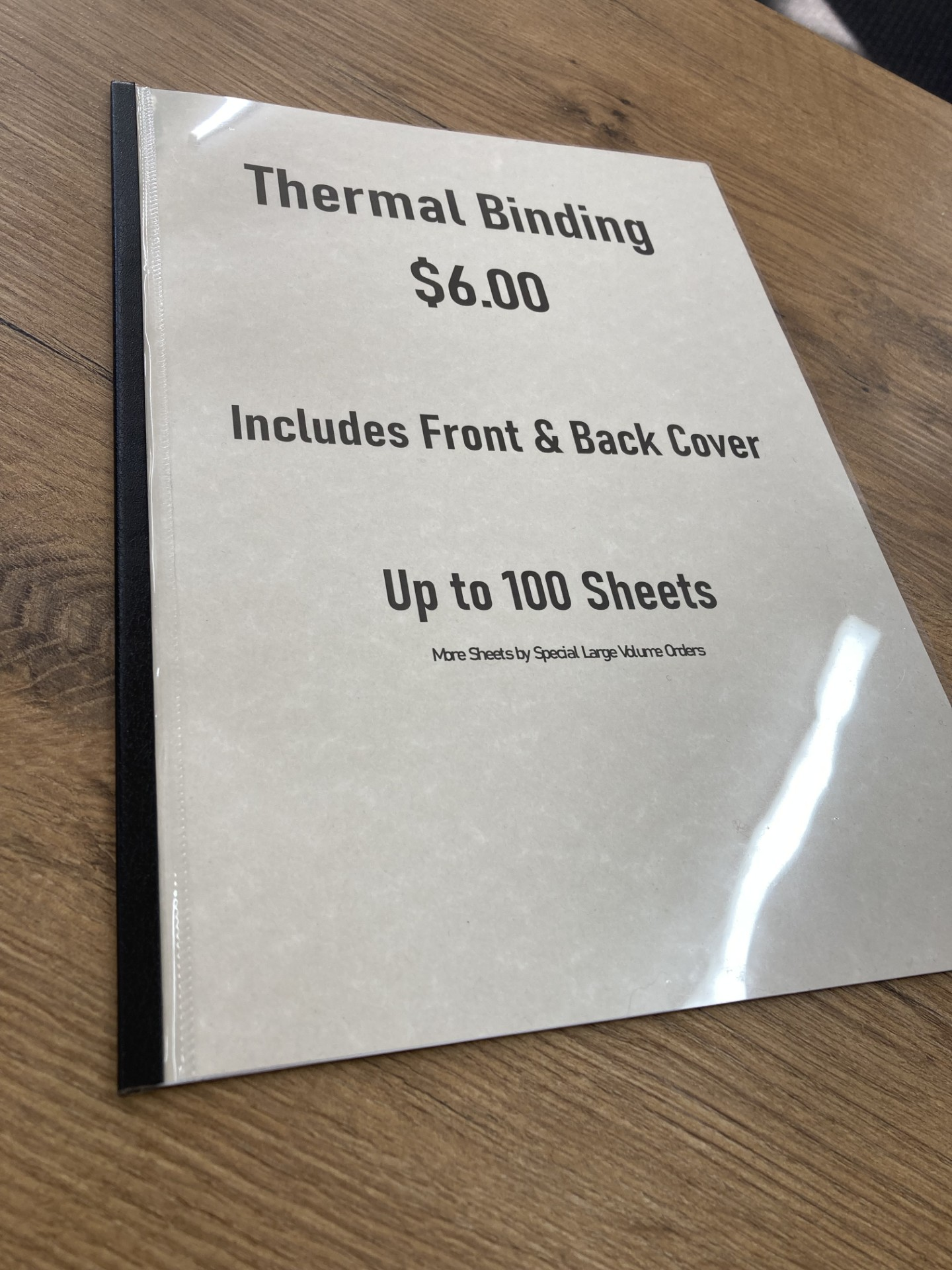 | Thermal Binding – Up to 100 Sheets | $6.00 |